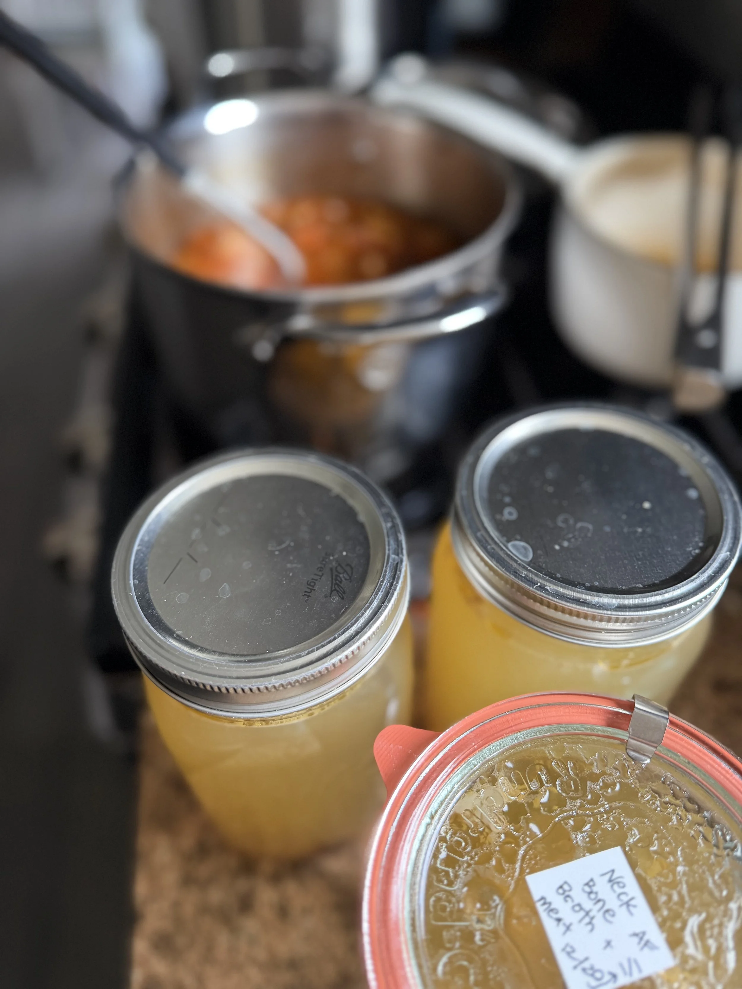 Many store-bought broths today are not made from 100% grass-fed, grass-finished bones. Often they rely on powders, hides, or lower-quality inputs and also include preservatives / processing aids (chemicals) that don’t align with traditional preparation methods / my gut health needs.
