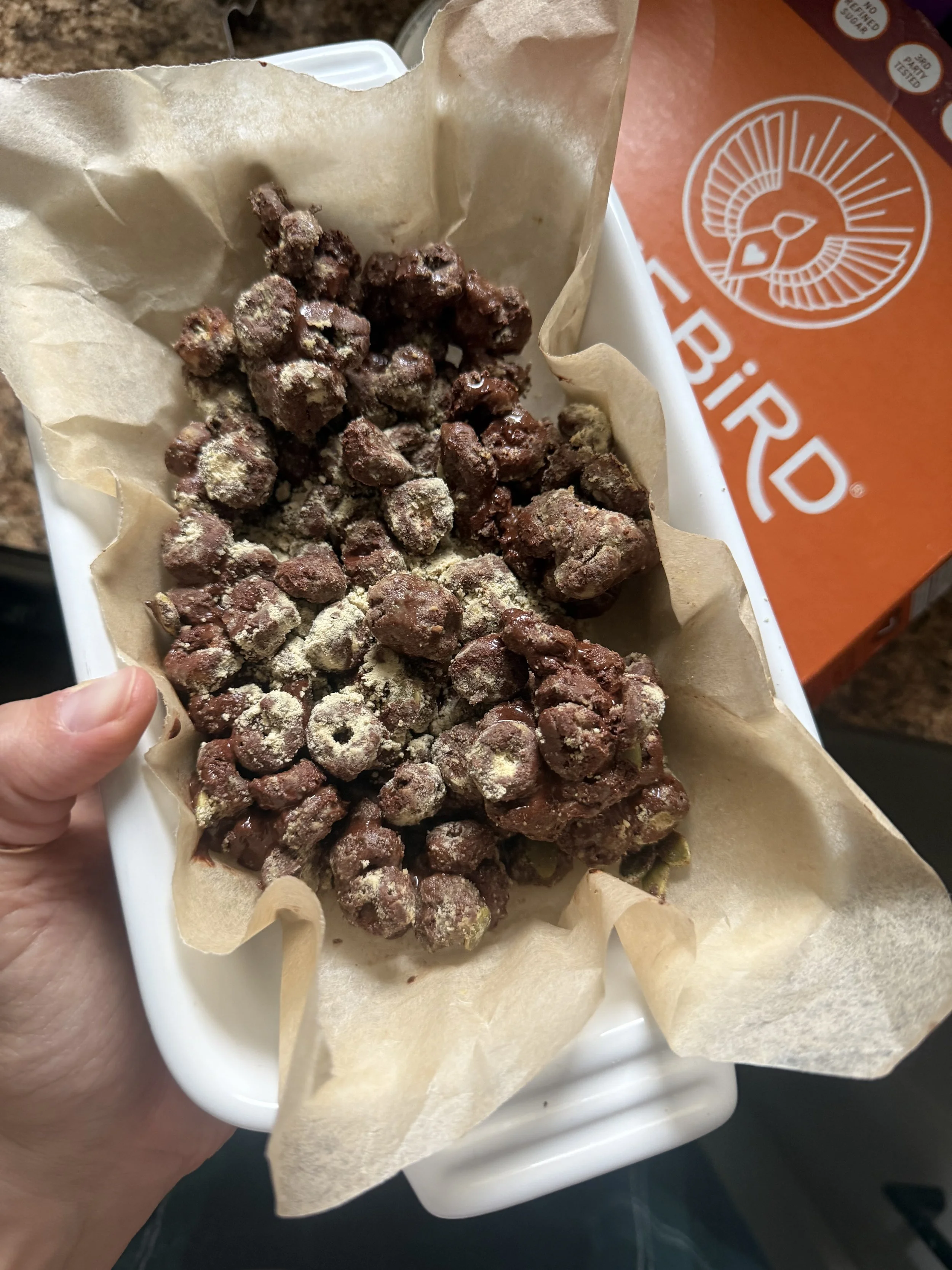 1 C (2 oz) Lovebird cereal (we use unsweetened or honey)