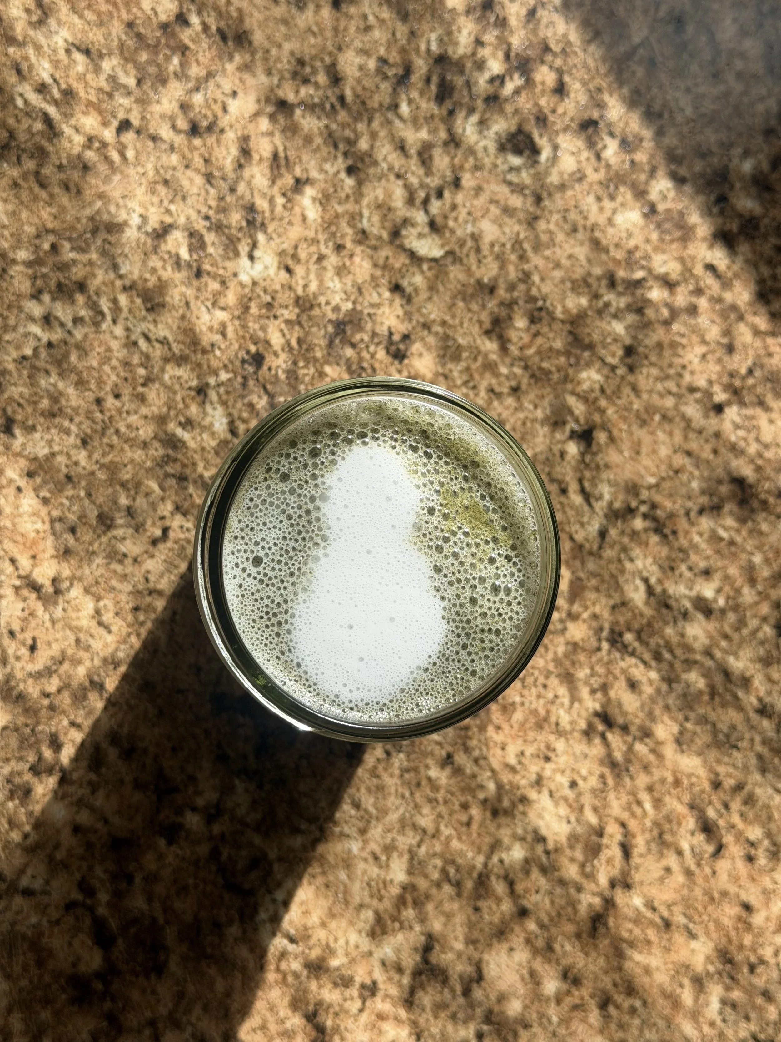 Unlike matcha, mugwort will not create the same bright green microfoam — it produces a softer, more subtle froth.
