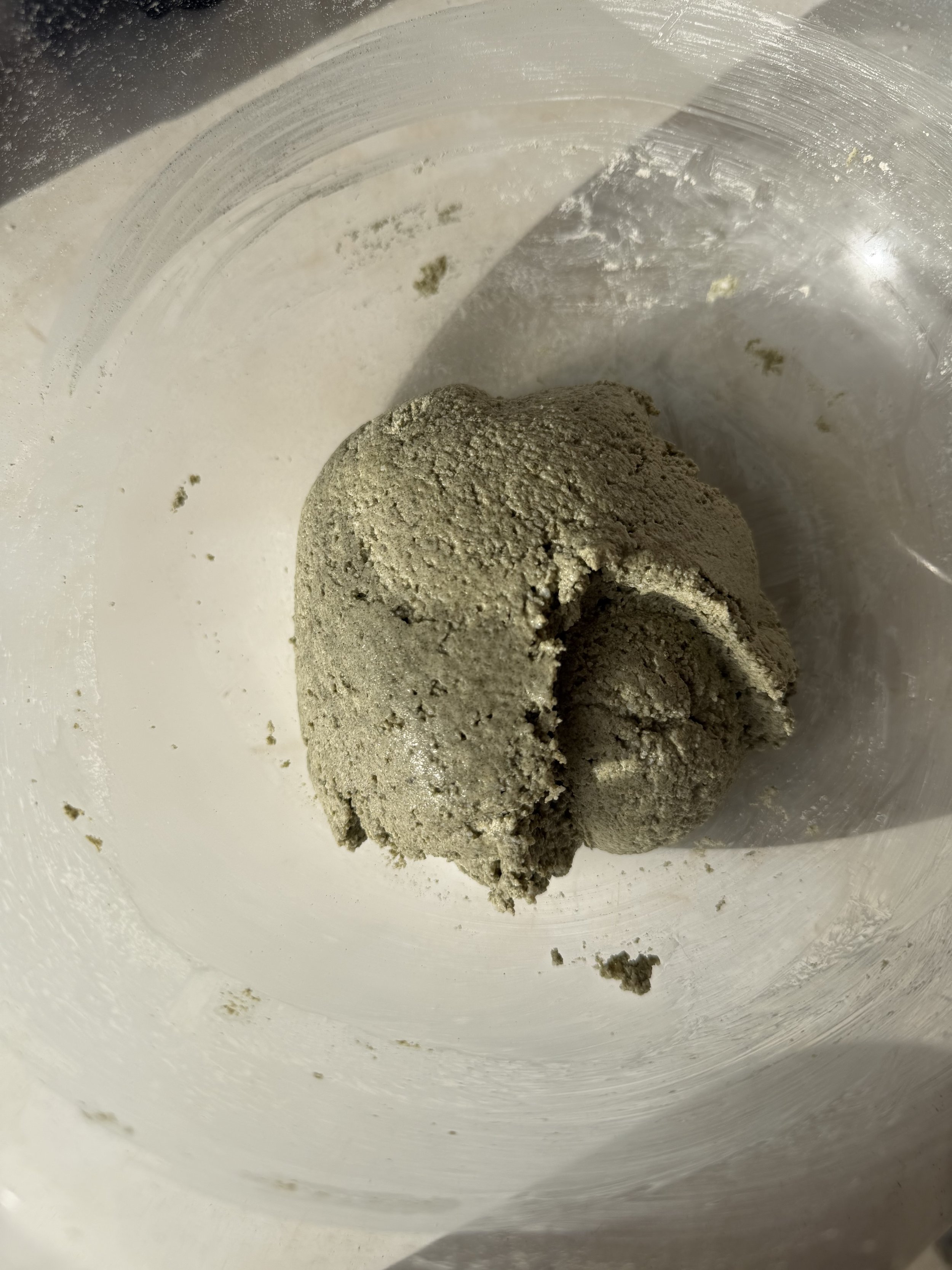 Slowly pour boiling water while kneading (~1/4 cup per bowl).