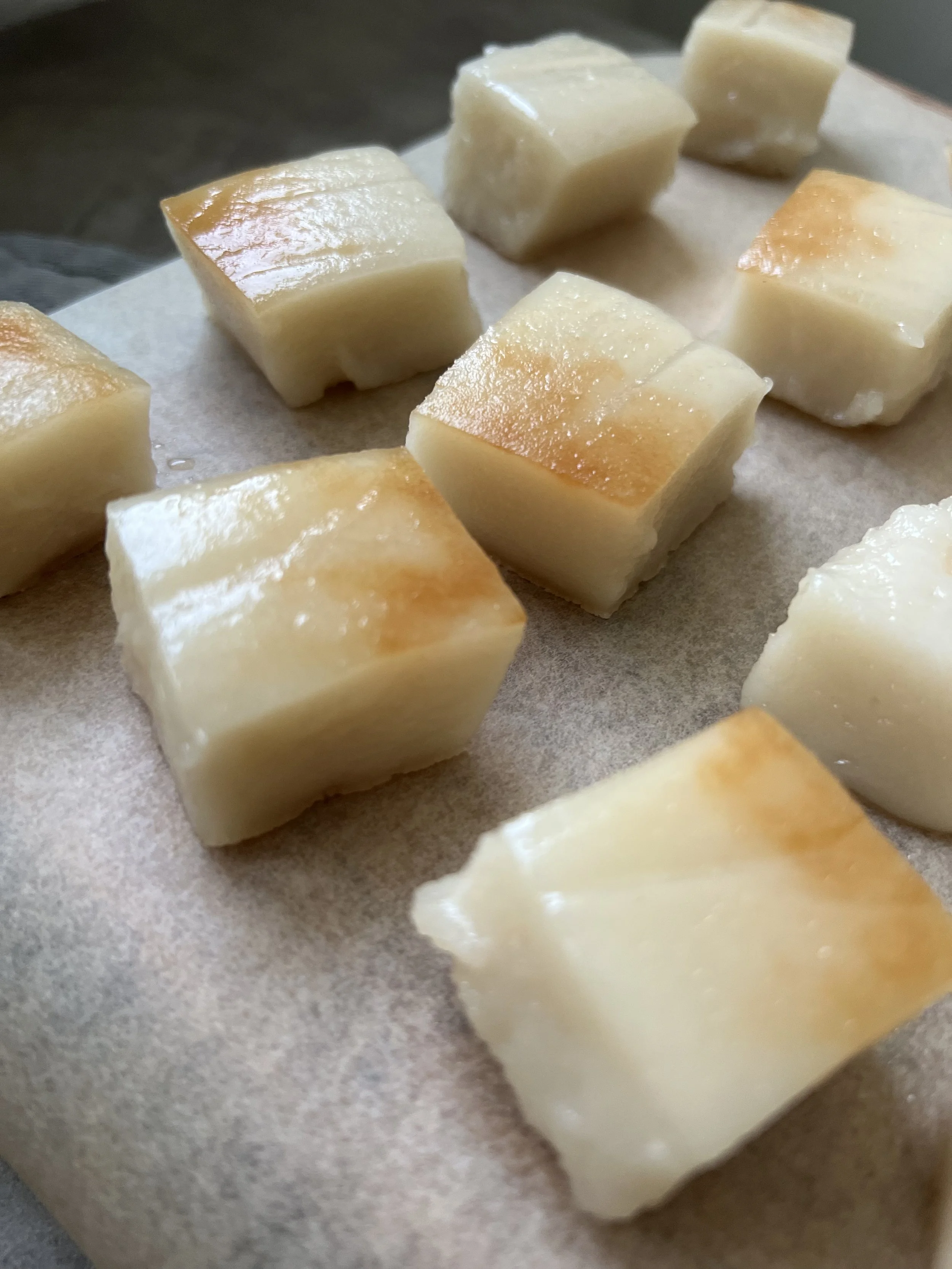When cooled, the mochi develops resistant starch, which acts like prebiotic fiber - so good for gut health (Source 2). See quote below for what this means!
